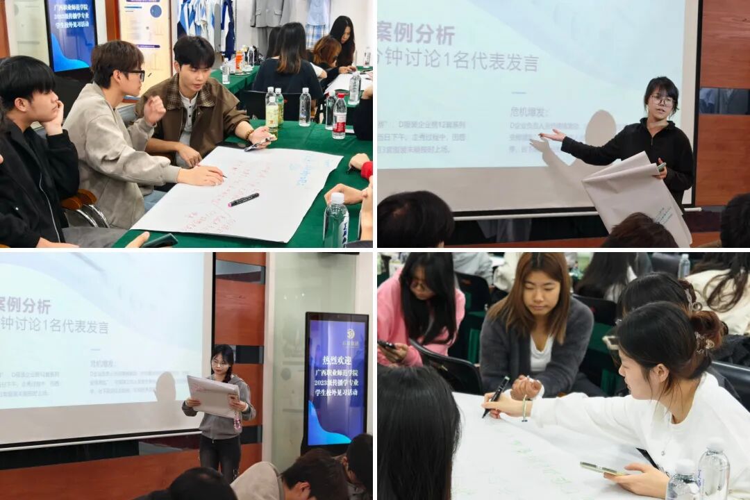 為增強見習活動的互動性,各小組圍繞企業(yè)提供的真實傳播案例展開討論。之后由各小組代表上臺進行匯報發(fā)言。這一環(huán)節(jié)鍛煉了學生的分析表達與團隊協(xié)作能力。